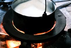 看着豆浆在火塘边咕嘟咕嘟煮开