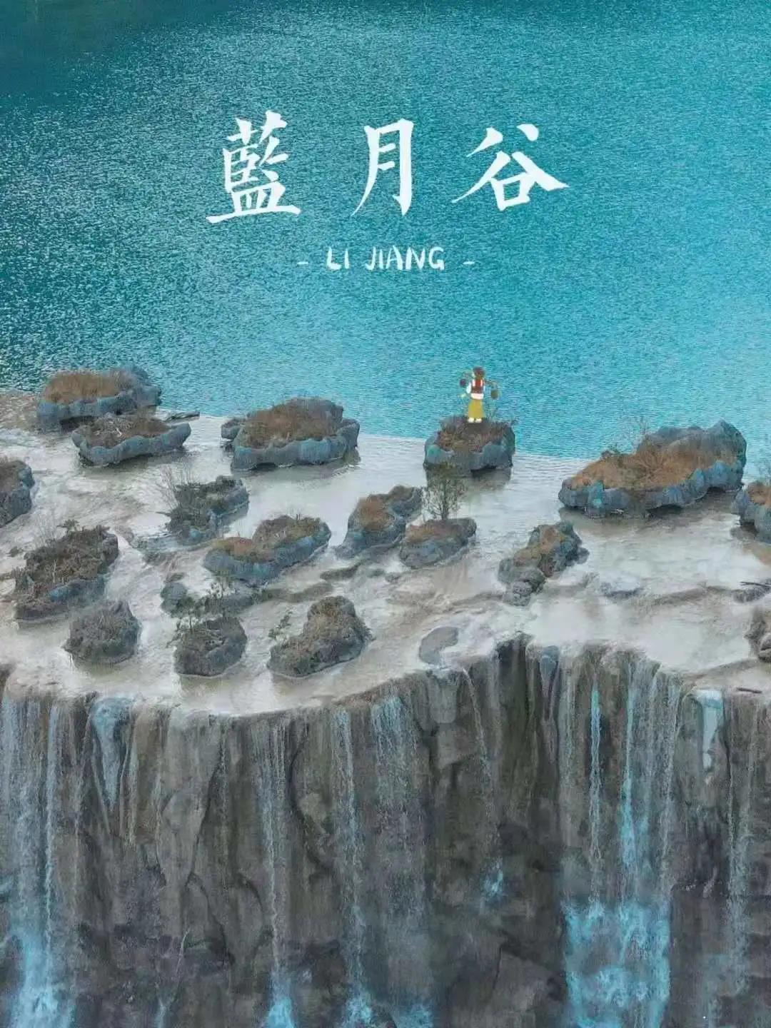 选项二三,索道游览结束后,观赏由张艺谋导演执导的大型原生态演出《印象丽江》。然后游览被誉为“小九寨”的【蓝月谷】,这里河水清澈见底、甘冽无比,晴天时水是蓝色的,下雨时水就变成乳白色,颇为神奇。