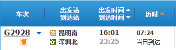 可选方案(费用不变):默认方案下午回到深圳北较晚,如果想上午返回,可报名时留言,但这样起床就要返回了,昆明几乎无游览时间。中午12:26的车次非始发无票